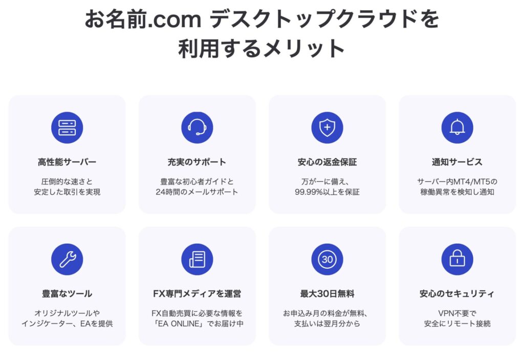 GPT-EAを安定的に運用するためにはそれなりに高性能な環境が必須です。そこで、以下の理由から、お名前.com デスクトップクラウドを選択することにします。