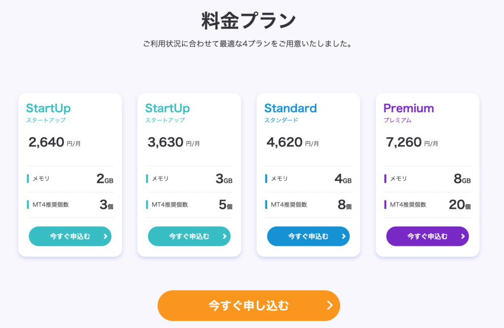 GPT-EAの運用にはVPSが必須です。24時間365日自動稼働させる環境を整える必要がありますが、できるだけ低コストで最低限のスペックのVPSを利用します。