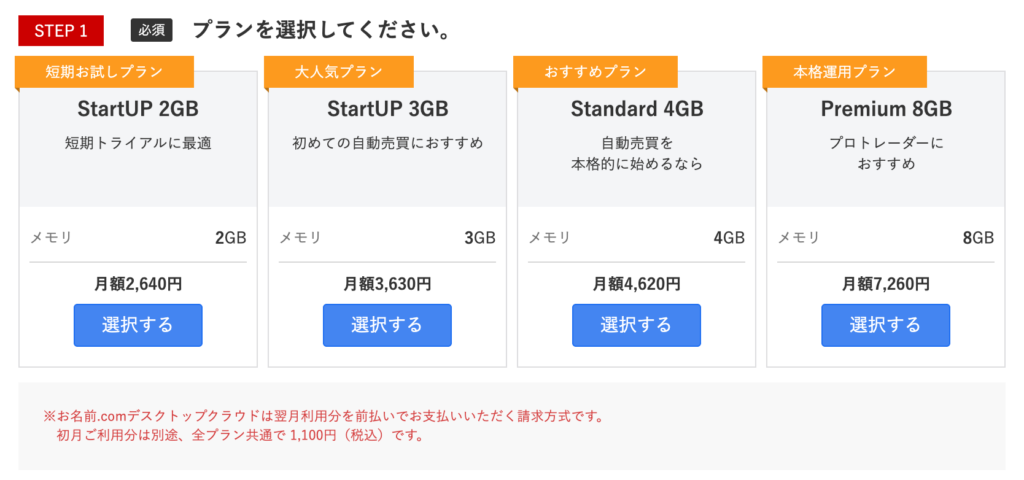 この記事は、「1.VPSを用意する」の中でお名前.com デスクトップクラウドを選択する場合の解説です。